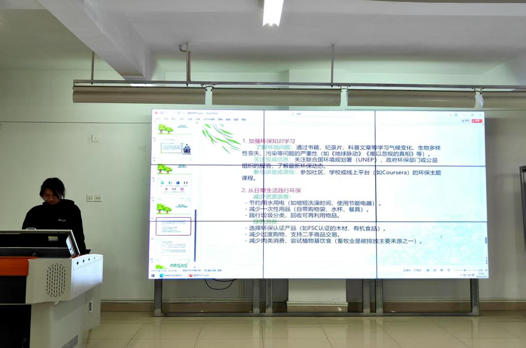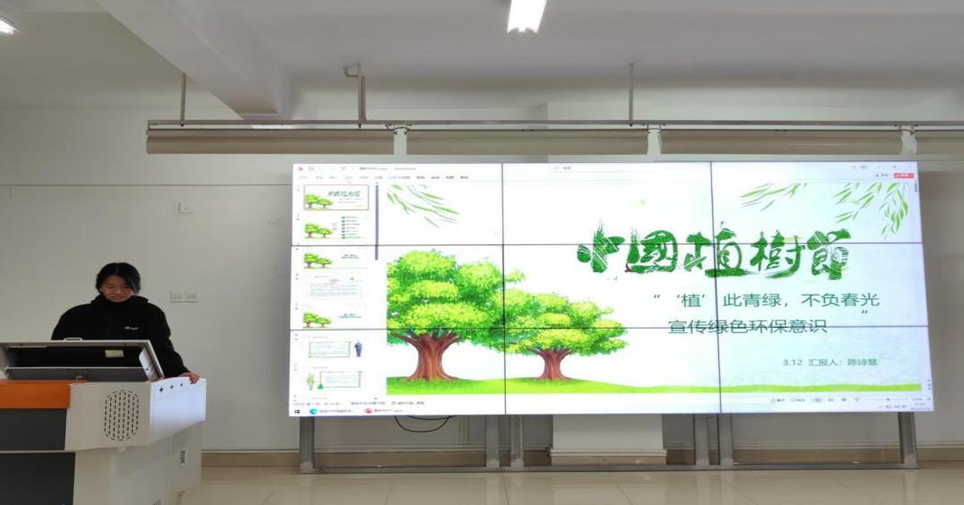 第一个环节是主持人陈诗慧介绍活动背景与目的,强调植树节不仅是倡导植树的节日,更是提醒关注生态、践行环保责任的重要契机。希望通过活动,增强同学们爱林、造林、护林意识,融入日常生活。