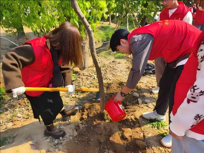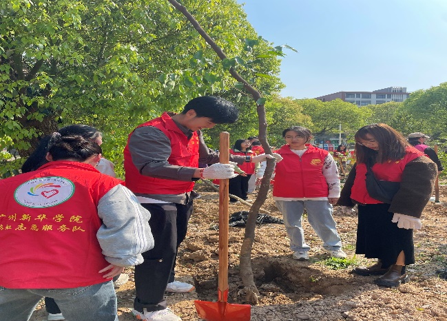 春日融融,春天带着绿色的的气息向我们走来。3月19日,304am永利集团团委副书记林嘉敏、学生会指导老师肖芳玲带领学生志愿者一同参加了主题为“绿美广东,青年先行”的2025年新华师生共植绿美青年林活动,为保护生态环境贡献自己的力量。