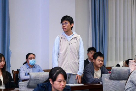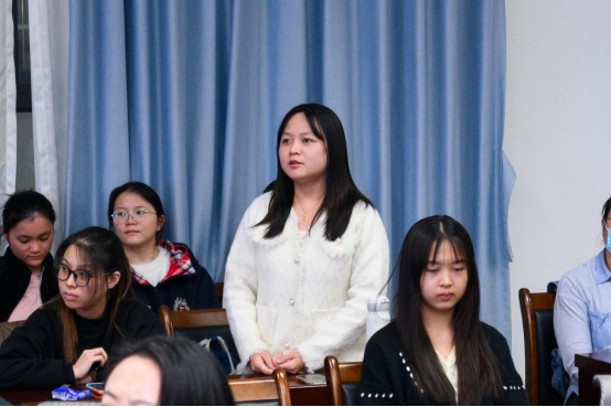 交流互动环节,各年级学生就自己在学习方面的疑惑积极向周教授请教,周教授耐心倾听每一位学生的问题,凭借其渊博的学识与丰富的经验,用通俗易懂、深入浅出——给予详尽且具启发性的解答,并为同学们积极的求学态度感到欣慰。