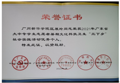 图11 区展玲老师获得“三下乡”省级优秀个人