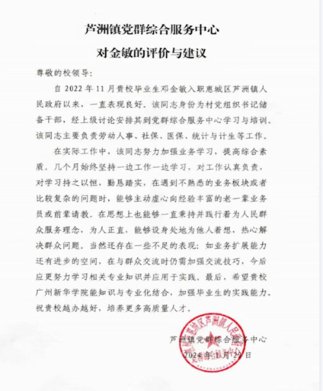 每年6月,本专业选拔优秀学子奔赴实习基地实习,让学生切身感受到政府政务工作流程的严谨性和规范性、接触到企事业单位工作的纪律性和高强度性,也促使学生在实际工作中养成处事严密、工作踏实、言行谨慎等实际工作中所需的优良习惯与品德,为踏入社会打下良好的基础。实习单位对学生综合评价表现良好。反馈结果显示学生基础扎实,工作上手快,沟通能力好,满意度达100%。