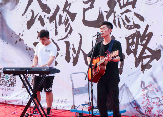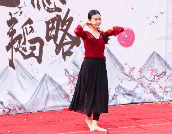 当观众们还沉浸在剪彩的愉悦中时,winners歌手郑伟林同学以及键盘手苗宇曈同学合作演唱了一首十分动听的歌曲《夜空中最亮的星》,干净清亮的嗓音为现场观众送去听觉享受。还有优美的民舞表演,舞者谭茜同学如灵动的红衣精灵,伴着悠扬的民族音乐,在舞台上尽展曼妙身姿,翩翩起舞,这无疑是一场视觉盛宴。