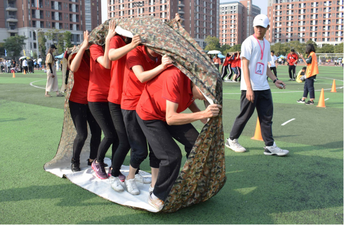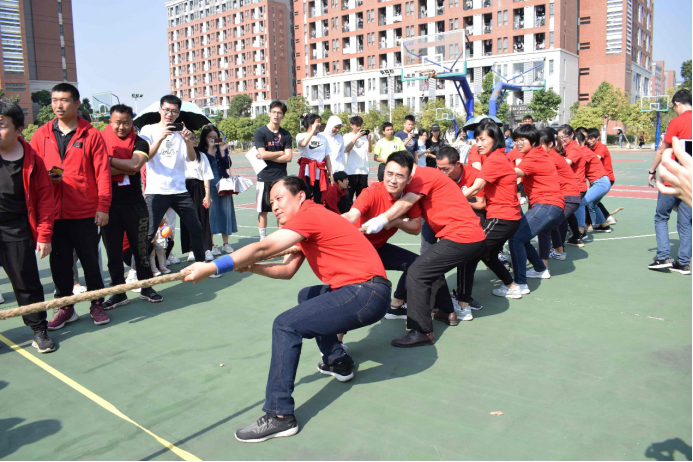激烈的赛场上,除了学生外,老师们的比赛同样精彩纷呈。老师们走下讲台,穿上运动服和我们一起在赛场上挥汗如雨。在比赛的过程中老师们个个全力投入力争第一;在团体赛中, 伴随着“左、右、左、右”的口号,老师们步伐整齐地踏着“风火轮”,显得无比默契。