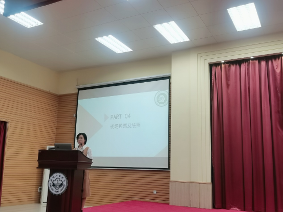 院党总支刘艳芬副书记进行总结发言。她首先赞扬并肯定第十三届学生会委员会的工作成绩,向全体学生会干部的辛勤付出表示了衷心感谢。同时对候选人的竞选演讲表示充分肯定并寄予厚望,希望新一届的学生会委员会能更好地带领干事们为同学服务、为学校服务。她提出,学生会委员会要不断提高工作和学习能力,发挥先锋模范作用、桥梁纽带作用。