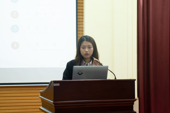 (图二:学生会常务副秘书钟菁湉宣读广州新华学院304am永利集团第一次学生代表大会筹备工作报告)