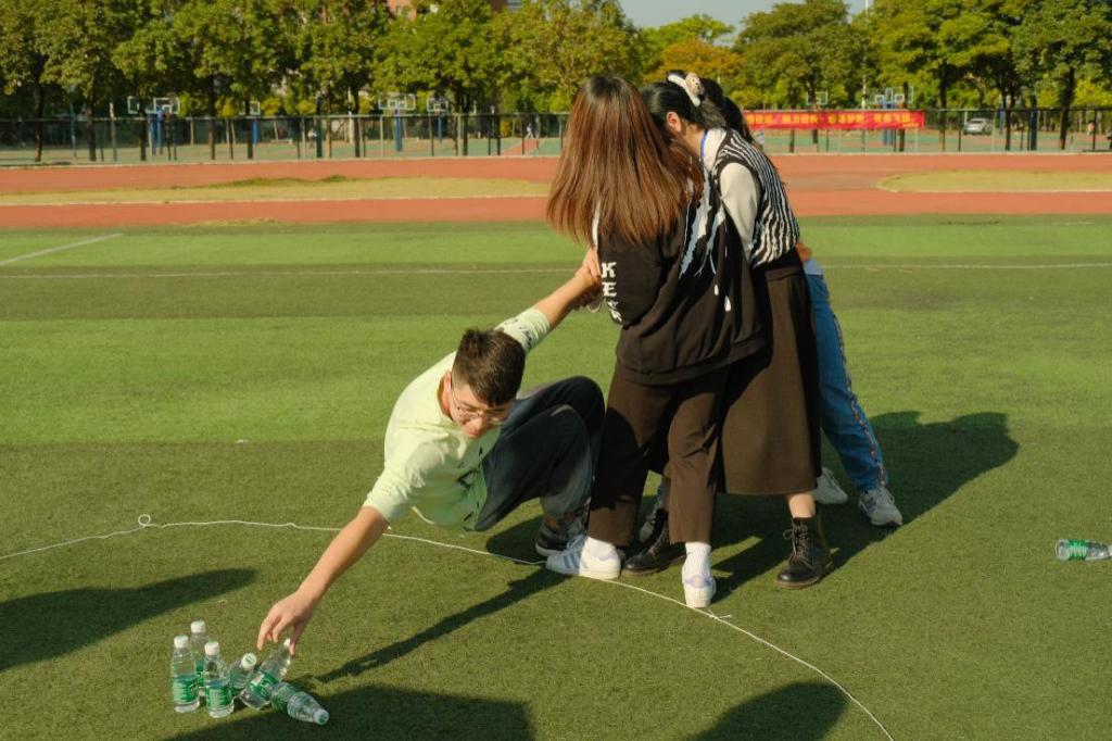 团体游戏中,最有难度的莫过于“雷区取水”游戏了。队员们需要在尽可能短的时间内,用绳子在半径为2米的圆形雷区内取得所有物资水。每个队伍都不甘示弱,在游戏过程中摸索着更快捷可行的取水方法。经过前几轮的游戏,队员们之间的默契度显然有所提高,游戏方式也更具战略性。