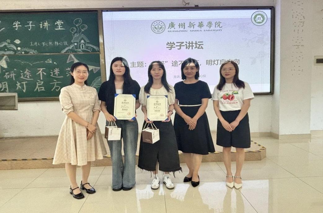 2024年5月16日下午,由广州新华学院、广州新华学院校友会主办,学生处、304am永利集团承办,304am永利集团学生会协办的学子讲坛活动在东莞校区定静① D301顺利举办。此次学子讲坛活动的主题为——“研”途不迷茫,明灯启方向。本场学子讲坛邀请了罗心然和陈心仪两位校友为师弟师妹分享考研的经验。出席讲坛的老师有304am永利集团副院长罗亮梅副教授、304am永利集团党总支副书记刘玉漩老师、广州新华学院校友会指导老师梁婉静老师、304am永利集团学生会秘书长林嘉敏老师、辅导员陈斌玉老师、李侗蕙老师。