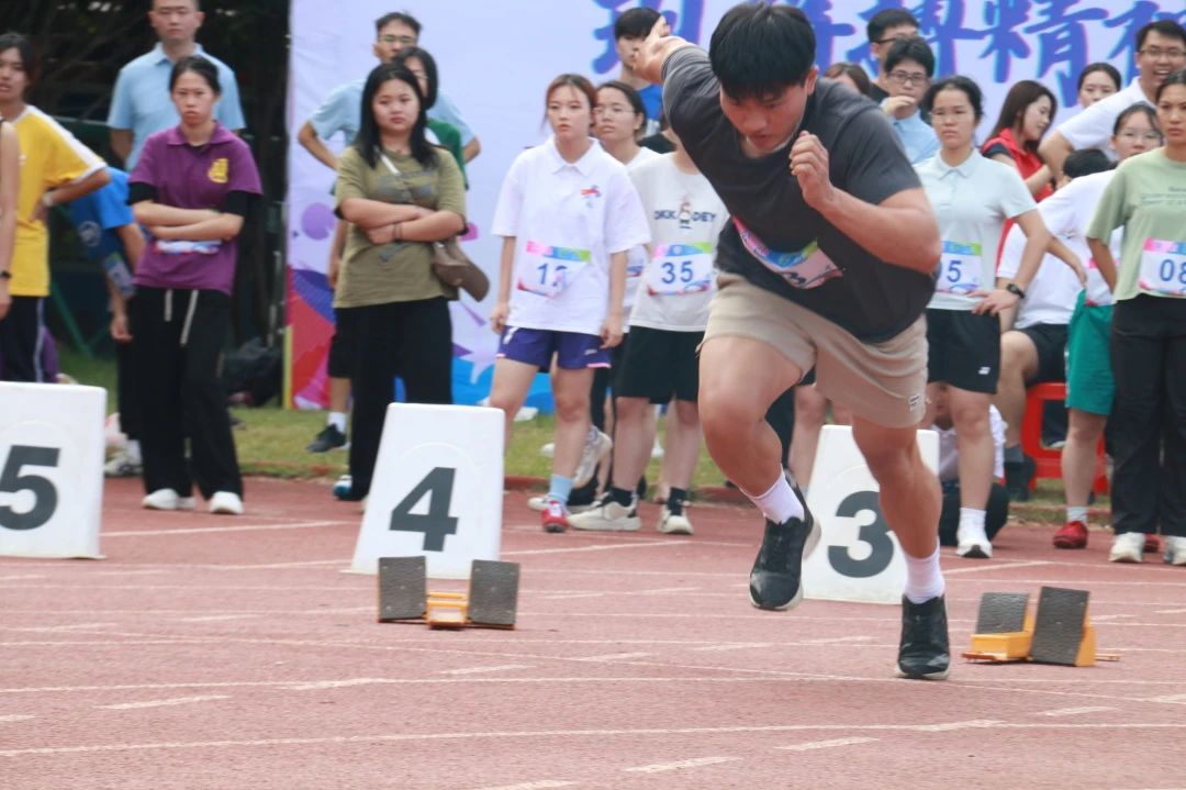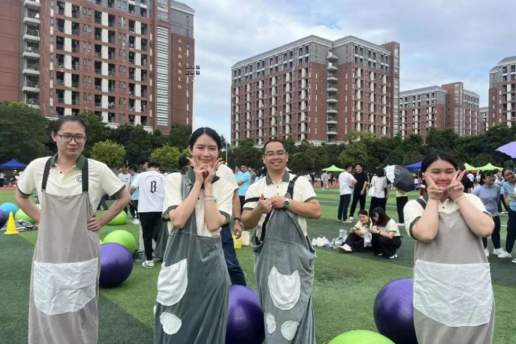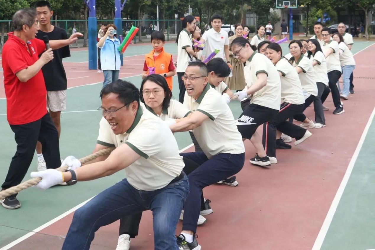 此外,还有教职工趣味项目及拔河比赛。本次赛事活动裁判队由本校多位优秀体育老师及骨干青年志愿者组成,保证了比赛公平、公正进行。