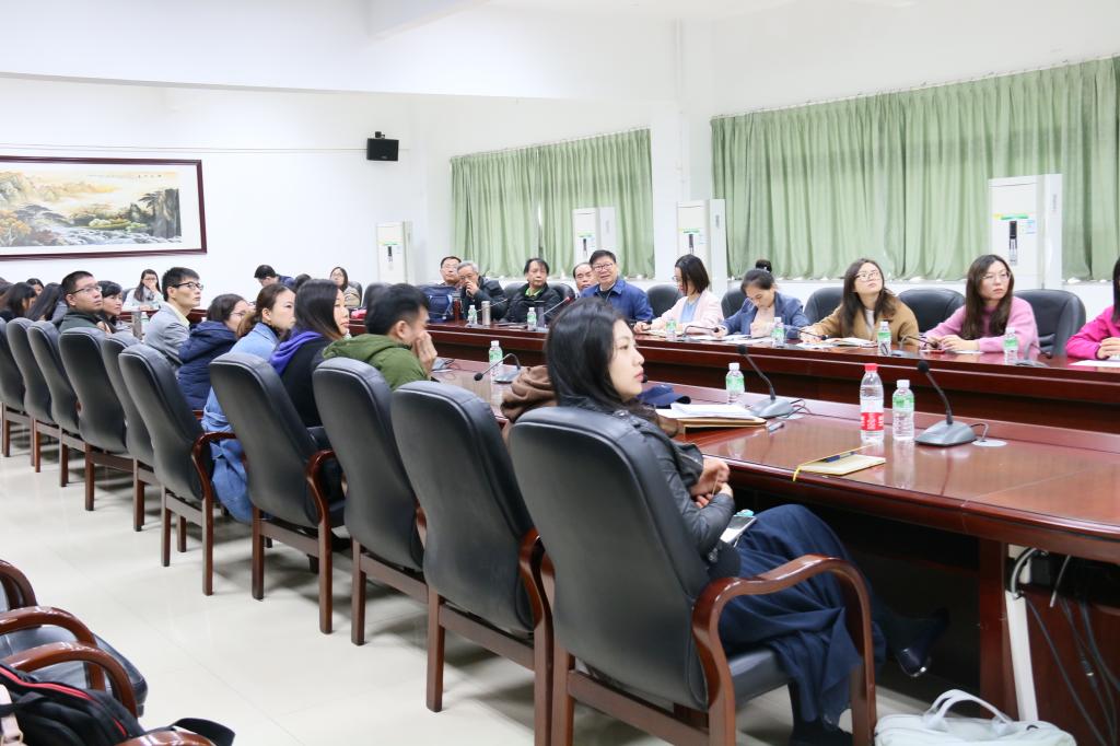 随后,蓝永金副校长就充分肯定了我院本学期的工作,并就总结报告提出建议及期望,他希望老师们可以从人才培养方向搞科研,培养学生的理想信念,树立正确的价值观,引导学生从“他律”转为“自律”。