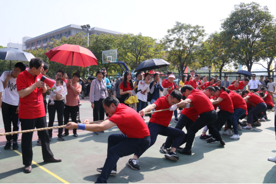 烈日炎炎,身穿中国红的公治院队伍脚底生根顽强拼搏,经过三轮比拼夺得第二名的好成绩。作为平均年龄最大的队伍,从组队到比赛名单经过多次斟酌,教师报名踊跃。我院也高度重视本次比赛,将其作为做好团队建设的重要内容,经过充分动员,全院在岗教师参与率达89%,只有3位教师因事未能出席。徐文俊院长亲自领队,副院长谭昆智、罗亮梅,工会主席王光辉等与学院重量级教师组成15人拔河队伍,其余17人组成声势庞大的啦啦队加油助威。比赛激烈,现场气氛高涨。