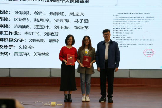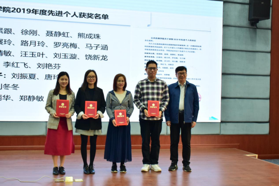 最后,徐文俊院长充分肯定了2019学年第一学期全院教职工取得的成绩,对2019学年第一学期各项工作表现优秀者进行了表彰。