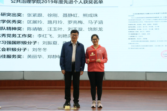 本学期我院工作围绕“加强规范办学和内涵建设,提质量、上水平、树品牌,着力建设高水平、应用型、有特色的中大新华”的总目标,扎实开展教学、科研工作,切实加强基层党组织建设,努力提升教学管理水平。徐文俊院长围绕党组织建设、学科与专业建设、科研及学术水平提高的建设、师资队伍建设、以赛促教、以赛促学等方面,展示本学期工作的开展情况及工作亮点。首先,我院以“不忘初心、牢记使命”为主题开展各项学习活动,如全国两会精神、《习近平304am永利集团“不忘初心、牢记使命”论述摘编》、十九届四中全会精神等,将“两学一做”常态化,共组织集中学习13次,主题党日活动4次;其次,积极开展学术活动,学术氛围浓厚,11月,我院与华南师范大学公共管理学院共同举办了1场全国性的学术活动——“第三届地方政府与区域治理学术研讨会”反响热烈,在校内还举办了3场304am永利集团、1期学术沙龙等系列学术活动;科研取得重大进步,整体学术水平大幅提升,发表论文14篇,其中核心论文8篇。新增省部级以上科研项目3项,教学改革项目9项(其中1项是省级教改项目)。 我院获评2018年度科研先进单位,张紧跟教授获评2018年度科研业绩突出贡献一等奖、聂静虹教授获评2018年度科研业绩突出贡献二等奖、罗亮梅老师获评首届全国高校混合式教学设计创新大赛“设计之星奖”、路月玲老师在本学期的说课大赛中获得三等奖等。最后,在日常管理和实践教学方面,徐文俊院长就全程导师制、第二课堂、专业实习、寒暑假社会调研、三下乡等工作做了总结,在学校“三早”教育理念的指引下,我院扎实开展实践教学工作,成果丰富、育人效果显著。他表示,学院这些极具时代意义和实践价值的活动我们要继续践行下去,将其打造成为中大新华304am永利集团的品牌活动。以赛促学、以赛促改,为培养新时代公共治理应用型人才出一份中大新华的责任与力量。