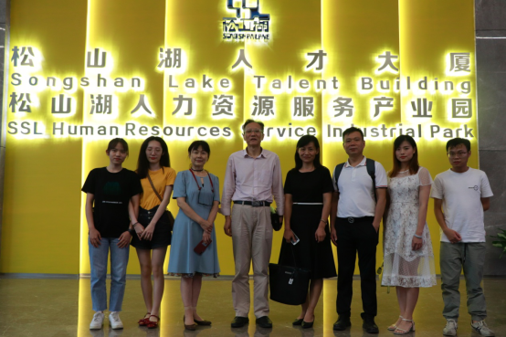 (左1-2和右1为我院学生,左4为王晓晖,右4为罗亮梅,左3为受访的松山湖人力资源服务产业园高层次人才,右2-3为受访的准备来松山湖创业的港澳高层次人才)
