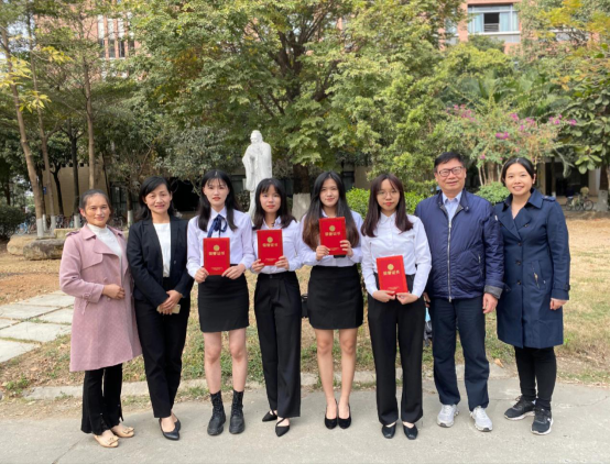 (从左至右为唐玲老师、罗亮梅副院长、陈心仪、陈欣雯、许琳畅、刘蕊娜、徐文俊院长、区展玲老师)