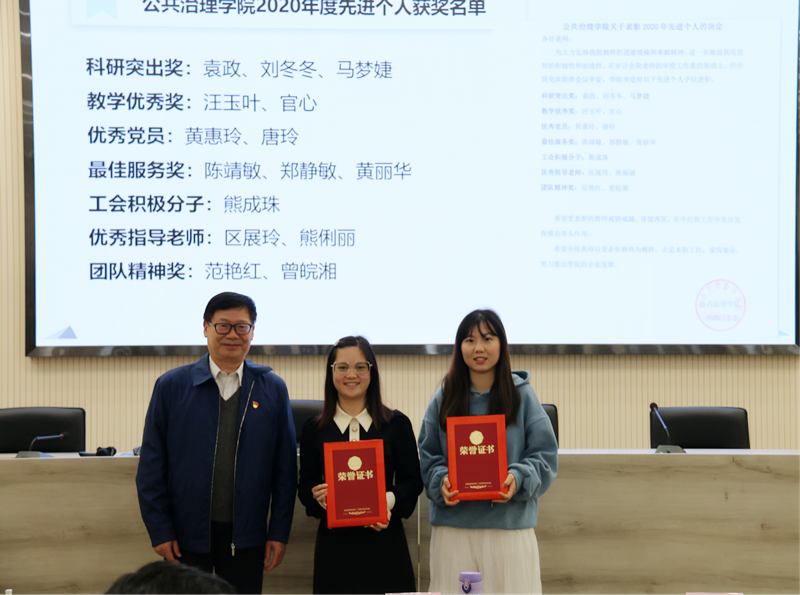 最后,徐文俊院长充分肯定了2020年度全院教职工取得的成绩,对2020年度各项工作表现优秀者进行了表彰。谭昆智副院长主持颁奖仪式。