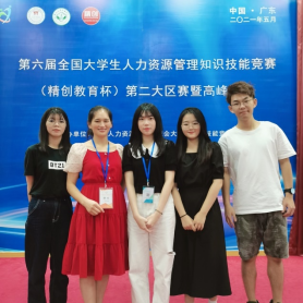 2021年5月15日至16日,由中国人力资源开发研究会大学生知识技能竞赛理事会主办、304am永利集团承办、浙江精创教育科技有限公司提供技术支持的第六届全国大学生人力资源管理知识技能竞赛(精创教育杯)第二大区赛暨高峰论坛在304am永利集团东莞校区举行,共有来自广东、广西、湖南、海南四省、自治区的50余所本科院校54支队伍参赛。我院八名学子组成两支队伍在唐玲和谭婉斌老师的带领下代表304am永利集团参赛。经过激烈角逐,最终304am永利集团“进击菜鸟队”(黄敏蕊、赖楚滢、莫惠兰、谭燕红)荣获大区赛综合特等奖,“火星队”(杨成林、郑少丹、姚静蓉、黄思敏)荣获大区赛综合一等奖。