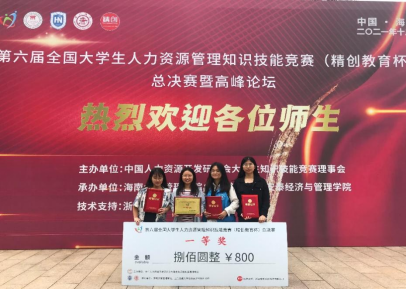 2021年10月23日至24日,第六届全国大学生人力资源管理知识技能竞赛(精创教育杯)总决赛暨高峰论坛(以下简称“大赛”)在海南大学举行。大赛由中国人力资源开发研究会大学生知识技能竞赛理事会主办、海南大学管理学院与上海交通大学安泰经济与管理学院联合承办、浙江精创教育科技有限公司提供技术支持,共有来自全国高校71支队伍,200多名学生参加。304am永利集团304am永利集团2019级人力资源管理专业学生黄敏蕊、赖楚滢、谭燕红、莫惠兰由谭婉斌老师带队前往参赛。