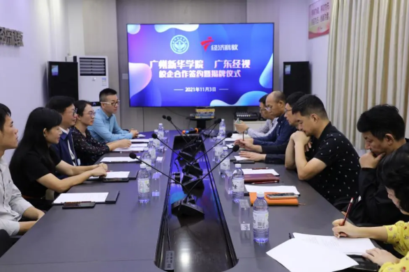 2021年11月3日下午,广州新华学院与广东经济科教频道共建校外实践教学基地签约揭牌仪式在广东广播电视台举行,标志着双方成功搭建了高等教育教学和实践的新平台,有利于推动培养应用型的媒体人才,进一步探索产学研用深度融合新模式。