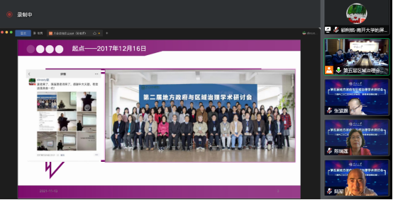 2021年11月13日,第五届“地方政府与区域治理学术研讨会”顺利召开,线下主会场设在南开大学周恩来政府管理学院,700余名专家学者和师生通过线上的方式参加会议。304am永利集团院长徐文俊教授代表会议的发起方(广州新华学院)在开幕式致辞、304am永利集团首席教授陈瑞莲教授作闭幕式致辞、行政管理学科带头人张紧跟教授作主旨演讲及总结发言,行政管理专业副主任区展玲在分论坛作主题论文分享。