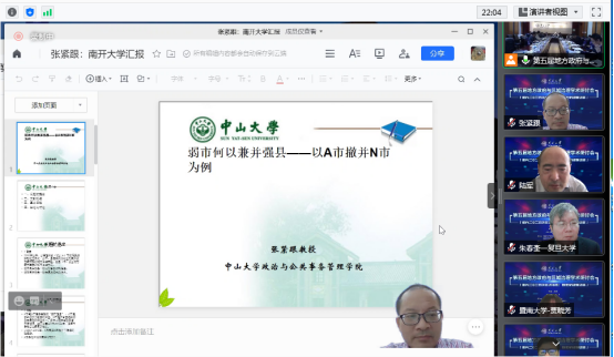 在主旨演讲部分,陆军教授(北京大学)作了《论中国区域协同治理中的财税政策条件》的分享,朱春奎教授(复旦大学)分享了《气候变化与韧性城市建设》的研究,张紧跟教授(中山大学、广州新华学院)介绍了《弱地级市何以兼并强县》的研究,杨爱平教授(华南师范大学)作了《虚实结合:粤港澳大湾区建设中的两种空间治理单元》的演讲,杨龙教授(南开大学)分享了《国家治理单元的设定与运用》。随后,会议分为4个分论坛,来自各地的学者围绕乡村振兴中的治理体系与政策执行、区域协同治理的机制、模式与应用以及地方政府职能转变等方面做了详细深入的探讨。