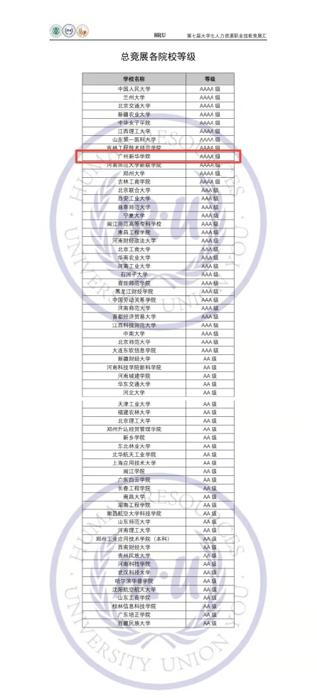 图为HRU组委会提供的总竞展获奖高校等级名单