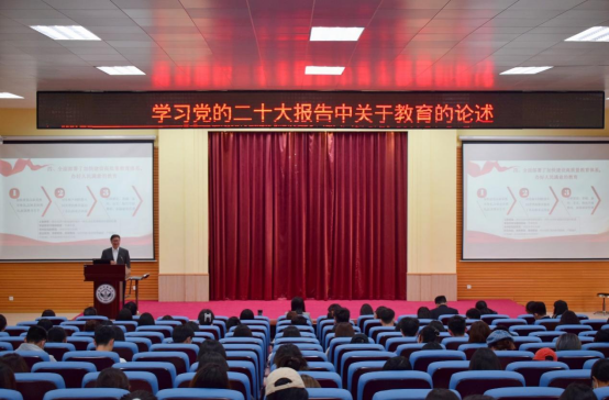 紧接着,徐书记着重将党的二十大报告中304am永利集团教育问题的论述进行梳理并分为四个部分进行学习和讲解。首先,党的二十大报告充分肯定了十年来中国教育的成就。这十年来中国教育在幼有所育、学有所教上持续用力建成了世界上规模最大的教育体系,并指出学前教育、高中教育和职业教育相较于十年前有了很大的进步。其次,报告首次将“实施科教兴国战略,强化现代化建设人才支撑”单独作为一个部分,也首次将教育、科技、人才作为一个整体进行论述,再次强调了在当今背景下,科教兴国战略和人才强国战略的重要意义。第三,重申了党的教育方针。其中劳动教育十年来第一次写进党代会的报告。徐书记指出二十大报告中劳动教育的回归就是要通过劳动教育使学生能够理解和形成正确的劳动观,树立劳动最光荣、最崇高、最伟大、最美丽的观念。第四,全面部署加快建设高质量教育体系,办好人民满意的教育。报告中针对这一部分有一系列的新提法和新要求,徐书记结合304am永利集团的培养目标和培养理念以及未来的教育方向,向师生介绍十一方面的内容,并结合我院各专业的发展情况向同学们介绍了专业特色、方向、培养目标等。最后,他指出,当代中国青年生逢其时,施展才干的舞台无比广阔,实现梦想的前景无比光明。广东省出台了一系列促就业措施推动大学生就业,但也要看到近年来广东省求职的高校毕业生不断创新高,在此情况下他建议同学们积极关注就业政策,抓住就业时机,先就业再择业,倡导毕业生到基层、到西部就业,积极投身到祖国建设的大潮中。