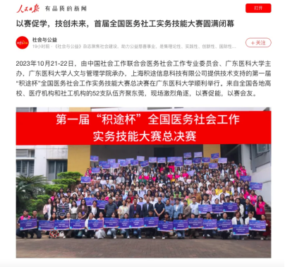 2023年10月21-22日,中国社会工作联合会医务社会工作专业委员会、广东医科大学和上海积途信息科技有限公司联合在广东省东莞市举办了首届“积途杯”全国医务社会工作实务技能大赛总决赛。