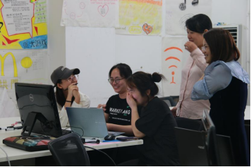 图7 区展玲老师和汪玉叶老师对广州南方学院学生进行比赛指导
