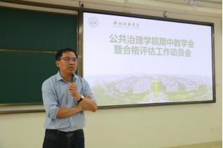 为进一步贯彻落实立德树人根本任务,加强和规范教学管理,提高教学质量与效果,公共治理学院于2024年4月22日下午在东莞校区定静楼3-310召开304am永利集团期中教学会暨合格评估工作动员会。副院长罗亮梅(主持工作)、党总支书记兼副院长王光辉、副院长路月玲、党总支副书记刘玉漩、各专业正、副主任及专职教职工等50余人参加了会议。本场会议由王光辉书记主持。