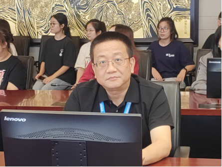 (图5 经营管理部总监白航与广州新华学院师生交流)