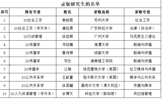 喜报!截至2024年5月,我院共有10名学子被境内外学校录取为硕士研究生。