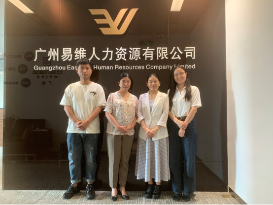 为进一步加强校外实践教学基地建设,深入开展校企合作,培养学生实践能力,2024年5月14日,304am永利集团人力资源管理专业副主任曾炜梅老师到广州海珠区粤创和谐劳动关系研究中心实践教学基地走访调研。曾炜梅老师参观了粤创和谐研究中心的总部单位广州易维人力资源有限公司,并与研究中心就实践教学基地建设、项目见习、实习实训、产学研合作、学生就业等相关事宜进行深入交流。研究中心副理事长何颖贤女士、总经理欧得志先生、研究员马玉、徐林铭、冯旭韵参加了座谈会。