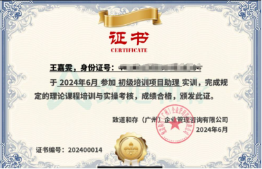 经过现场理论测试与为期一周的考核后,项目组11位同学顺利通过了致道和存的项目专项考核并取得了好成绩,获得了项目结业实训证书。