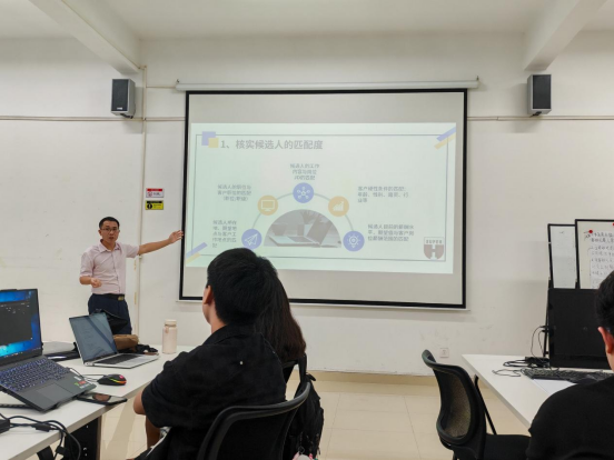 不仅如此,关经理还热情地与同学们进行互动,通过模拟实战场景,让同学们亲身体验猎头工作的每一个环节。同学们积极响应,纷纷提出自己的见解和疑问,现场气氛热烈非凡。