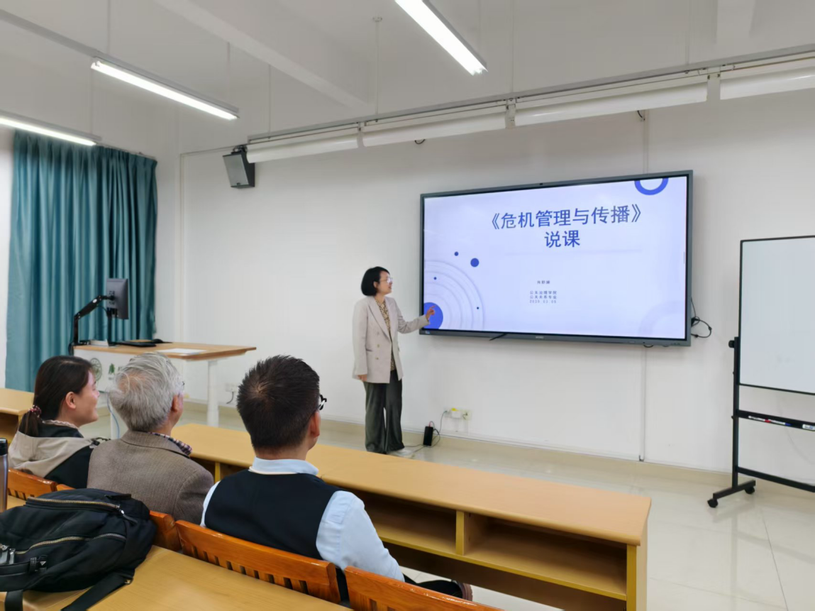 为促进新入职教师快速融入教学团队,提升教学技能,本次研讨会特别安排了新入职教师肖舒娅老师的说课环节。肖老师以《危机管理与传播》课程为例,深入浅出地阐述了课程的整体设计思路,并详细解读了课程的教学目标、教学方法以及多元化的考核评价方式。公关专业的教师们结合自身工作实际,为肖老师提出了进一步完善的建议。在研讨交流环节,与会教师围绕会议主题,结合自身教学实践,就如何更好落实OBE教学理念、提升学生能力培养等方面进行了深入探讨和交流,现场气氛热烈。
