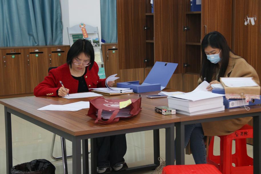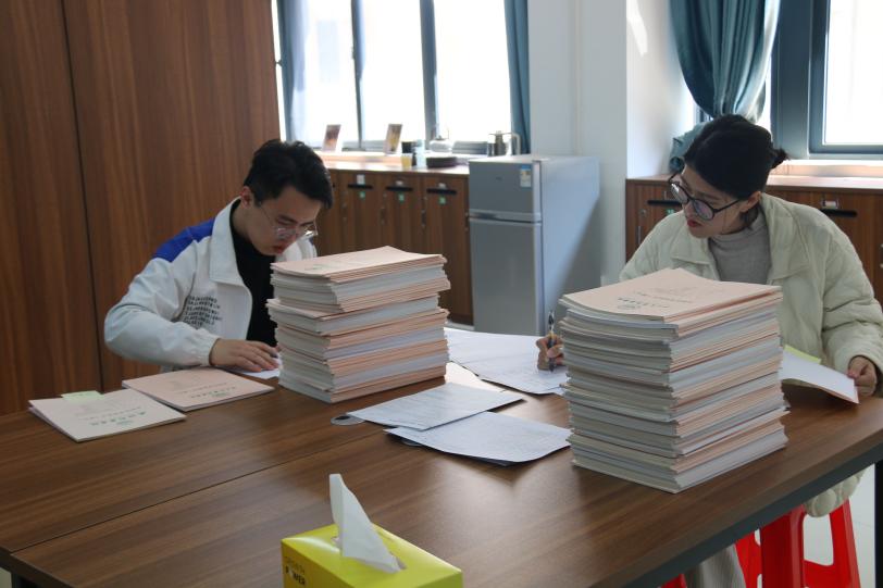随后,检查组分为三组分别对论文、教学资料进行规范性检查。在反馈会上,检查组充分肯定学院整改成效,教学材料归档逻辑性更强,制度执行更为规范。同时,也指出需改进的细节:个别课程试卷复核后未二次签名,部分毕业论文参考文献格式不统一。