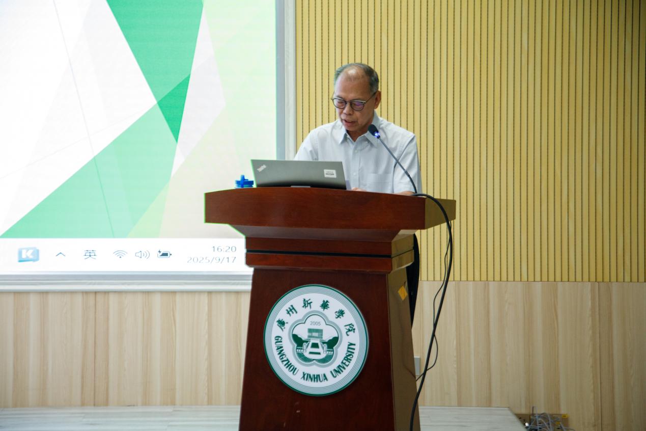 (图2:广州新华学院科研处处长谢祥云教授致辞)