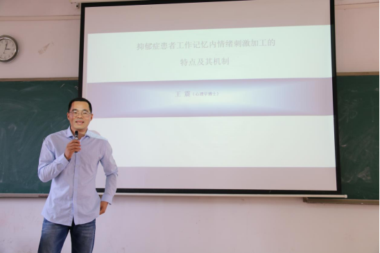 王震博士先给大家介绍了抑郁症是什么、目前我国抑郁症患病率数据及症状表现。他从认知偏向出发,从注意偏向、解释偏向和记忆偏向三个方面解释抑郁症患者脑部工作记忆的形成。他详细介绍了人类脑部在信息更新、抑制和转换三个功能方面的工作部位和原理,通过实验观察情绪刺激对脑部各部位的影响分析抑郁症患者工作记忆的特点,提出抑郁症患者在更新功能上难以及时移除工作记忆中的负性情绪信息及对正性信息编码存在缺失,在抑制功能上难以抑制五管负性情绪信息进入工作记忆,而在转换功能上的情绪刺激加工偏向的研究证据仍待加强。