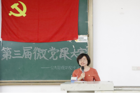 我院党总支书记徐文俊、副书记刘艳芬、教工党支部副书记唐玲、学生党支部书记曾皖湘担任此次大赛的评委,大赛由梁俊贤、周熙玲同志主持。