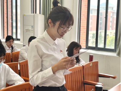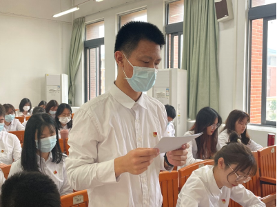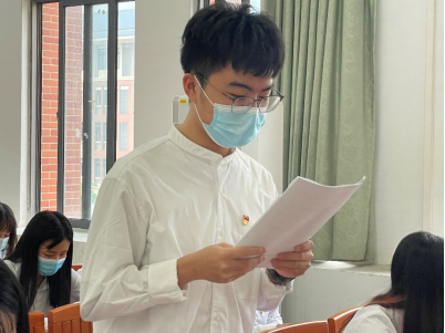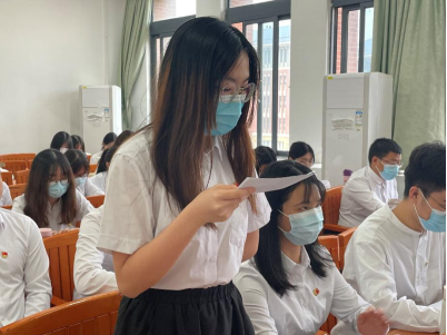 会议尾声,学生第一党支部书记曾皖湘进行总结发言。首先,她对以上5位发展对象转为预备党员表示祝贺,肯定了他们在过去学习中的努力和付出。随后,曾皖湘书记向党员同志介绍了本支部发展情况及支部架构,希望各位党员无愧于今天的使命担当,不负明天的伟大梦想,以史为鉴、开创未来,埋头苦干、勇敢前行,积极发挥党支部的战斗堡垒作用。