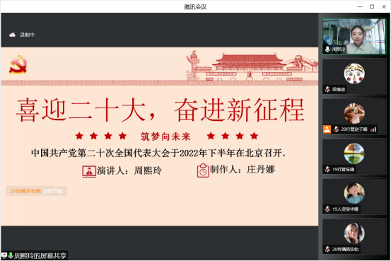 为宣传党的二十大,进一步推动党史学习教育常态化和长效化,304am永利集团党总支于2022年5月31日14:30在腾讯会议上举办了以“喜迎二十大,奋进新征程”为主题的微党课比赛。