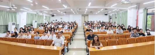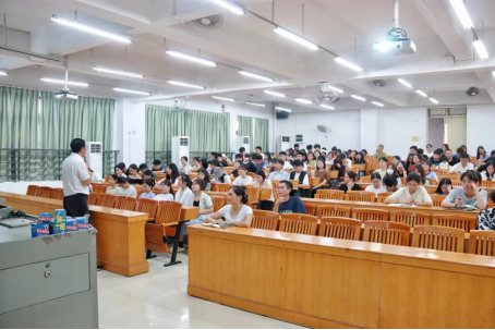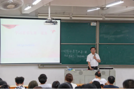 紧接着,王书记向同学们传授了科学的学习方法和原则:一是学习要仰望星空。应明确学习目的,掌握好理论知识。二是学习要脚踏实地。“纸上得来终觉浅,绝知此事要躬行”,在课堂学习之余,还应深入调研,深入生活,脚踏实地。王书记又介绍了我院学子在第17届“挑战杯”广东大学生课外学术科技作品竞赛、广东大学生社会治理调研大赛、“三下乡”社会实践等活动的参与及获奖情况,鼓励同学们只要坚定理想信念,明确目标,慎思笃行,就能学有所获,行有所成。