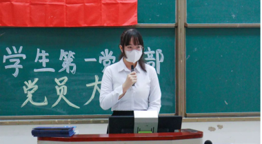 第五项议程 学生第一党支部书记曾皖湘做总结发言
