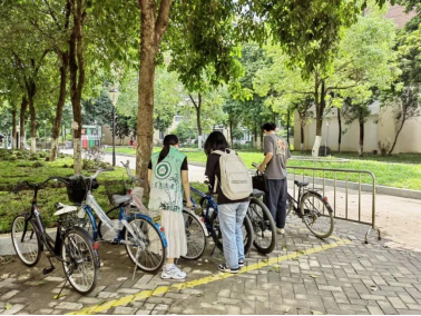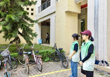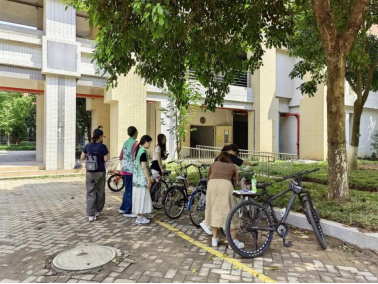本次活动在13:40至14:40学生上课高峰期时间段进行,学生党员志愿者值守于教学楼自行车摆放区域,提醒同学们在到达目的地后文明停车,并有序指引同学们摆放到指定区域。