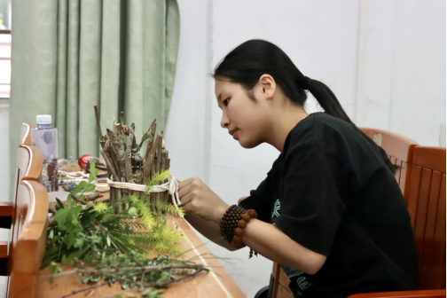 比赛开始,参赛选手们展开奇思妙想,将自己带来的废旧纸箱、雨伞、落叶等进行创作,他们通过双手把废旧物品变成一件富有创意的作品,赋予其新的生命,实现了废旧物品的循环利用。
