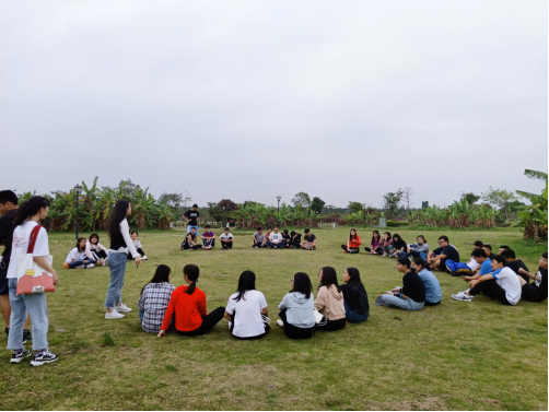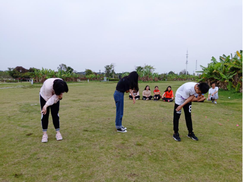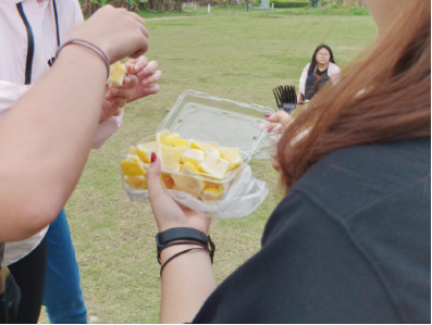 在到达蕉园后,同学们在班委的组织下进行分组并围圈而坐,认真听活动主持人介绍活动目的,活动意义及几项游戏的规则,团日活动便正式开始啦!