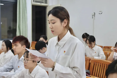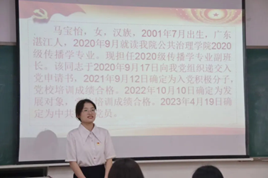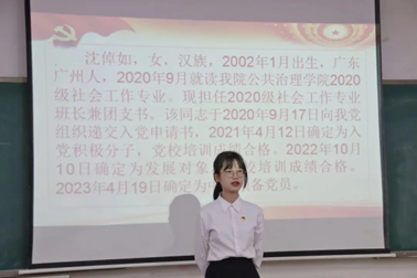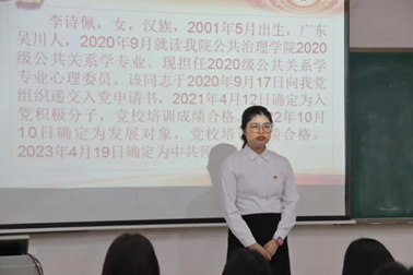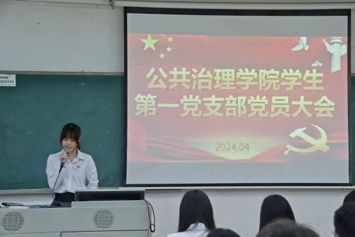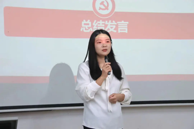 在会议的最后,学生第一党支部书记曾皖湘老师作大会总结。首先,她重申了党员的权利和义务。希望党员同志们时刻保持身为党员的自觉性和先进性。其次,她强调了党员的纪律性,提出党员同志应该时刻严格要求自己,增强责任意识,发挥好先锋模范作用。最后,她对即将毕业的党员们表示了未来可期的美好祝愿。