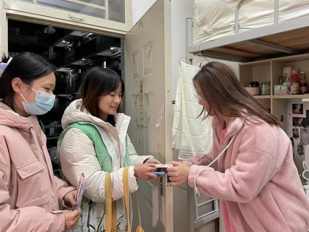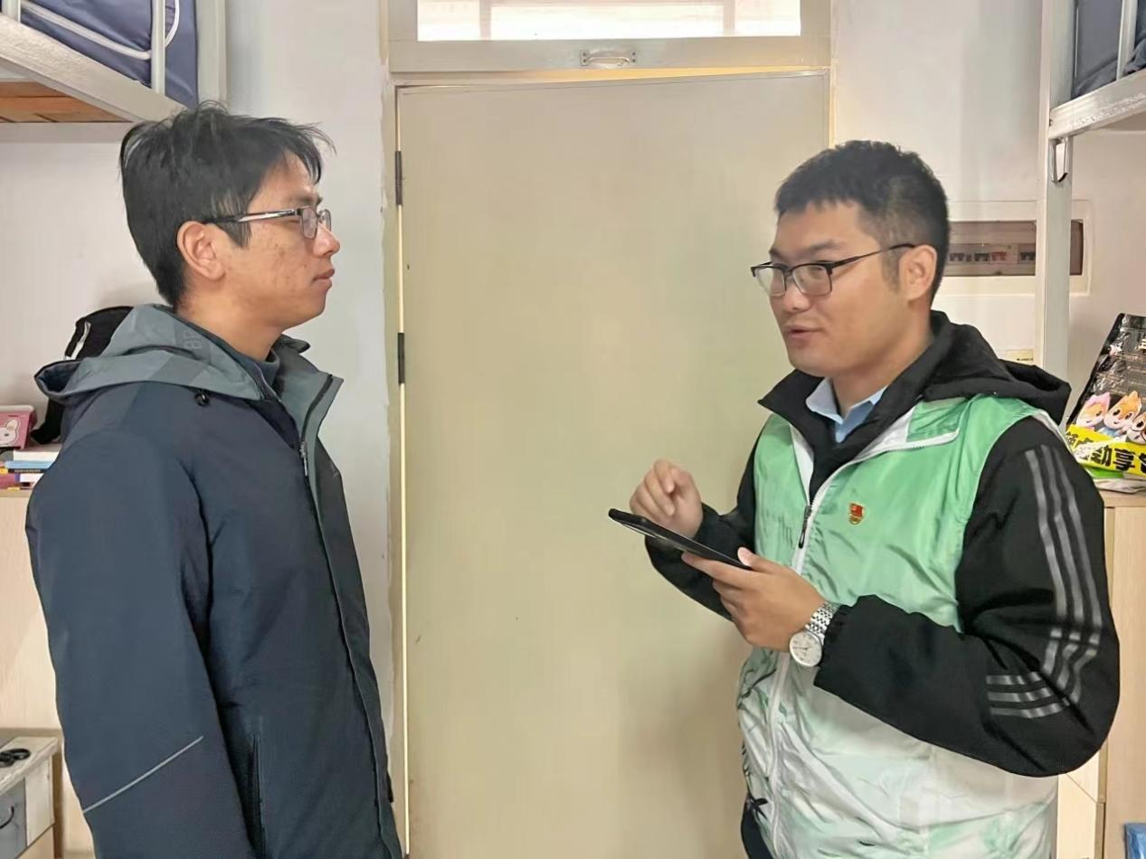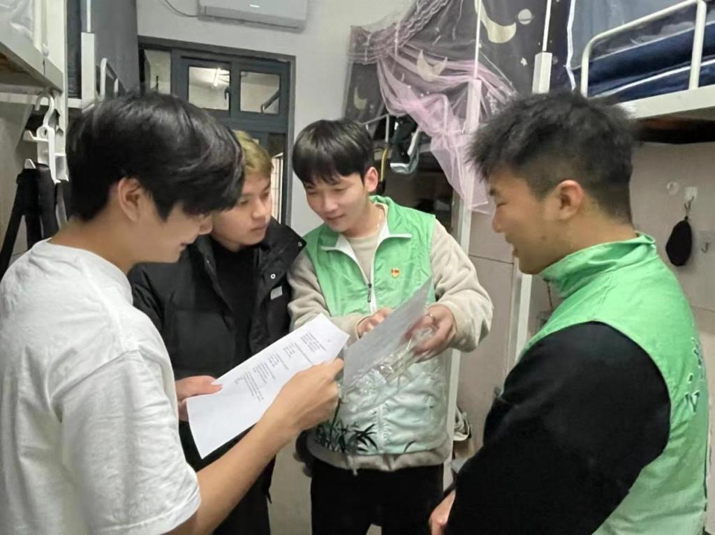 在走访过程中,在学生第一党支部书记曾皖湘老师的带领下,学生党员们耐心地向同学们讲解目前典型的电信诈骗类型,并提醒同学们“不听、不信、不汇款、不转账”。同时,学生党员们询问同学们是否都已关注“金钟罩”微信公众号且注册账号,并强调其重要作用。