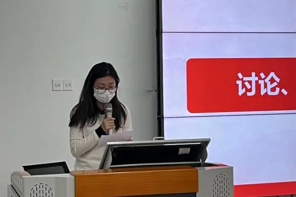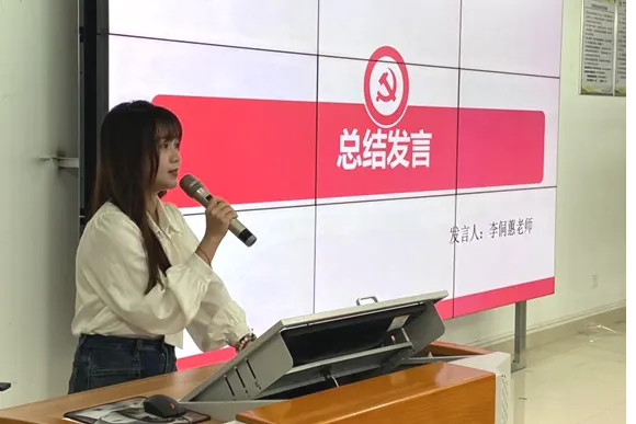 最后,学生第二党支部书记李侗蕙进行简要总结,她首先对顺利按期转正的三位同志表示衷心的祝贺,并强调作为青年党员需时刻以党员标准严格要求自己,在学习和生活中能够不忘入党初心,坚定理想信念,开拓进取。坚持不懈用习近平新时代中国特色社会主义思想凝心铸魂,以饱满的热情和坚实的责任感,在新时代勇于担当作为,砥砺前进!