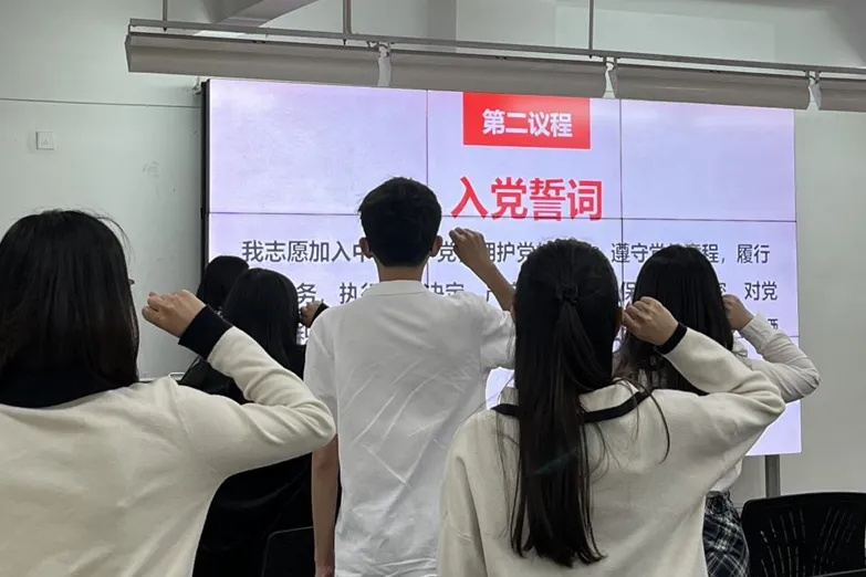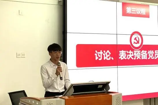 本次会议共有三项议程。一、奏唱国际歌,重温入党誓词;二、讨论、表决预备党员转正;三、学生第二党支部书记李侗蕙做总结发言。